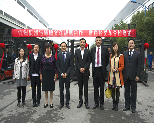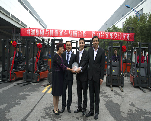 日前,江蘇江陰海瀾集團有限公司與林德()叉車有限公司在海瀾之家工業園舉行了百臺叉車交付儀式。海瀾集團愛居兔儲運總監張菊娣、運輸管理部部長陳金虎、林德叉車總裁兼執行官郭金鵬、蘇皖大區總經理陳陶、市場部經理姚黎出席了此次儀式。